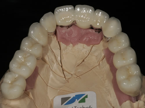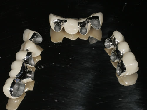 Normalerweise sind für die Anfertigung einer Brücke mindestens zwei Zähne notwendig. Diese werden beschliffen und mit künstlichen Zahnkronen versehen, die ein Brückenglied tragen.