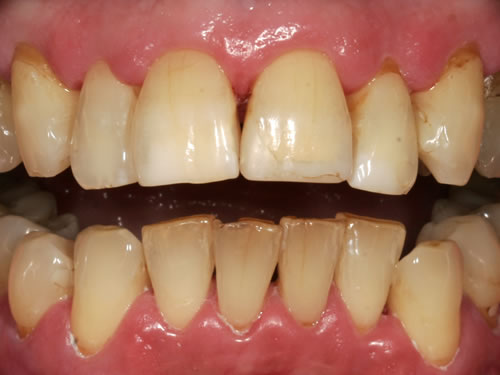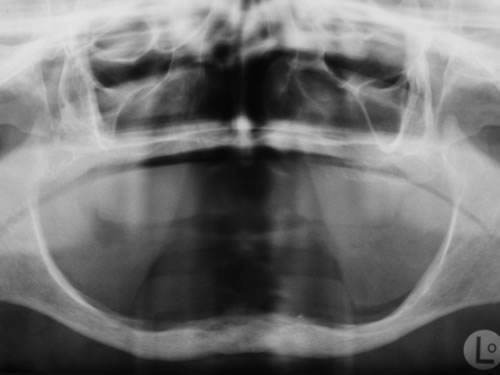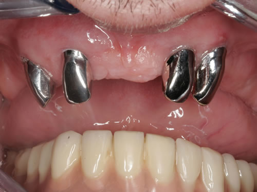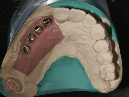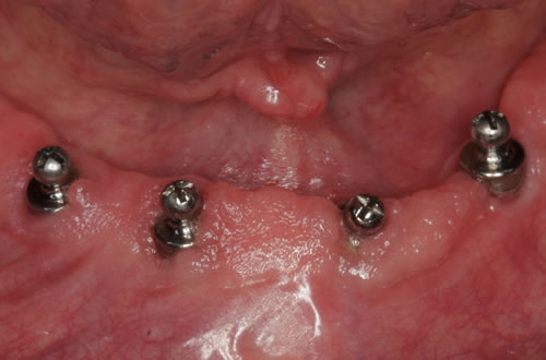 Diese Situation ist jetzt ausgesprochen schwierig zu versorgen, da der Platz zwischen dem unbezahnten Unterkiefer und der oberen Zahnreihe sehr begrenzt ist. Als Grundregel gilt deshalb, dass fehlende Zähne möglichst bald zu ersetzen sind, damit die Restzähne nicht "wandern", herauswachsen oder kippen.