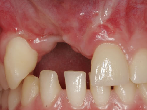Abb. 3.40: Kieferdefekt nach unfallbedingtem Zahnverlust der Zähne 11, 12.Abb. 3.41: Kieferdefekt nach unfallbedingtem Zahnverlust des linken oberen Schneidezahnes.
