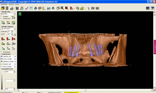 Es werden in der Planungsphase Modelle, spezielle Unterlagen und Röntgenbilder zum Vermessen des Knochenangebots angefertigt.