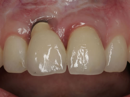 Abb. 3.31: Ersatz eines seitlichen Schneidezahnes durch ein Implantat.Abb. 3.32: Zementierte perfekte Krone.