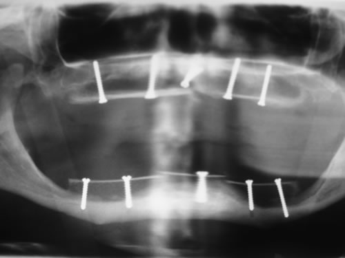 Bei großen Kieferdefekten, wie sie nach Unfällen, Operationen oder durch Fehlbildungen entstehen, kann in manchen Fällen nur mit der Hilfe von Implantaten ein Zahnersatz angefertigt werden.