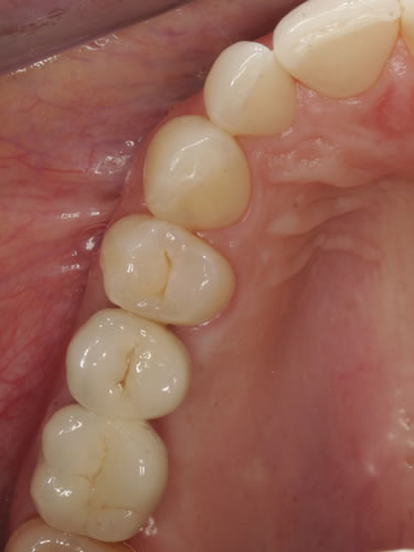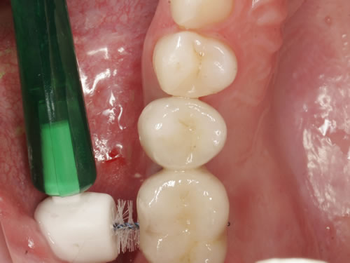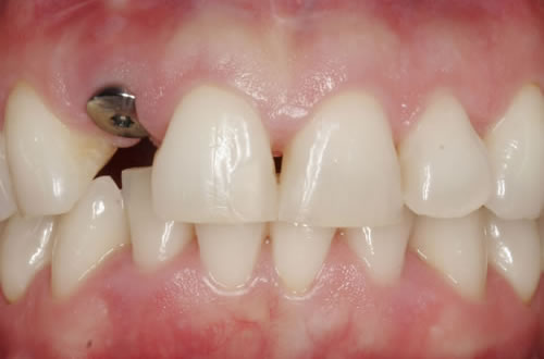 Bei einer derartigen Zahnlücke kann selbstverständlich auch eine Brücke angefertigt werden. Dazu müssen die der Lücke benachbarten Zähne beschliffen und mit entsprechenden Kronen versorgt werden. Dies ist allerdings erst nach dem 18. Lebensjahr möglich, da bis zu diesem Zeitpunkt das Kieferwachstum noch nicht abgeschlossen ist und der „Zahnnerv“ innerhalb des Zahnes noch so ausgedehnt ist, dass er durch das Beschleifen beschädigt werden kann. Wenn dazu die der Lücke benachbarten Zähne vollständig gesund sind, fällt dem Zahnarzt die Entscheidung zum Beschleifen schwer. Eine neuere Möglichkeit besteht in der Anfertigung von Klebebrücken, bei denen die Zähne nur wenig beschliffen werden müssen, aber dennoch wird geringfügig gesunde Zahnsubstanz entfernt.