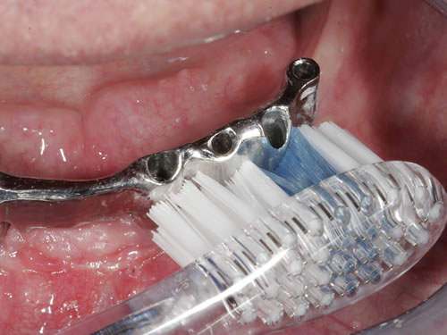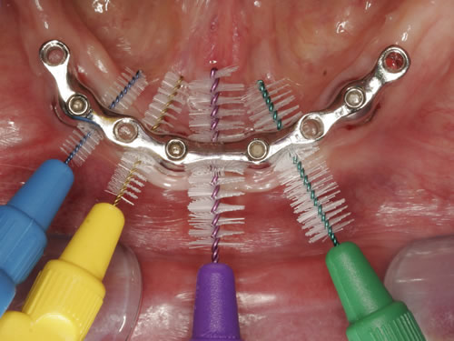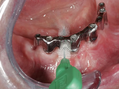 Nach durchgeführter Implantation und eingesetztem Zahnersatz ist der Erfolg der Implantatbehandlung auf längere Sicht maßgeblich von einer exakten Mundpflege und der regelmäßigen Nachkontrolle (Recall) abhängig.