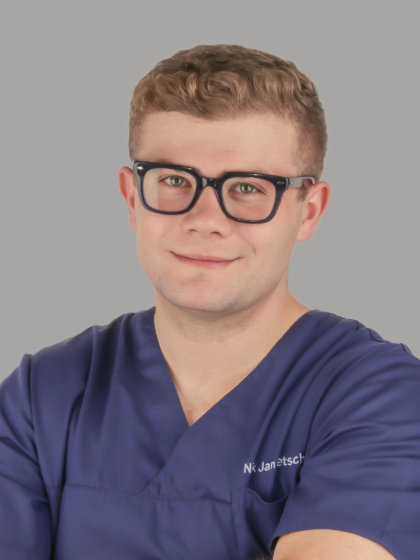 Dr. Nick Tetsch ist seit August 2025 Teil unseres Ärzteteams und verstärkt die Praxis nach seinem erfolgreich abgeschlossenen Studium. Die Promotion hat Dr. Tetsch erfolgreich in der Mund-, Kiefer- und Gesichtschirurgie des Universitätsklinikums Münster absolviert.