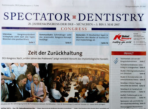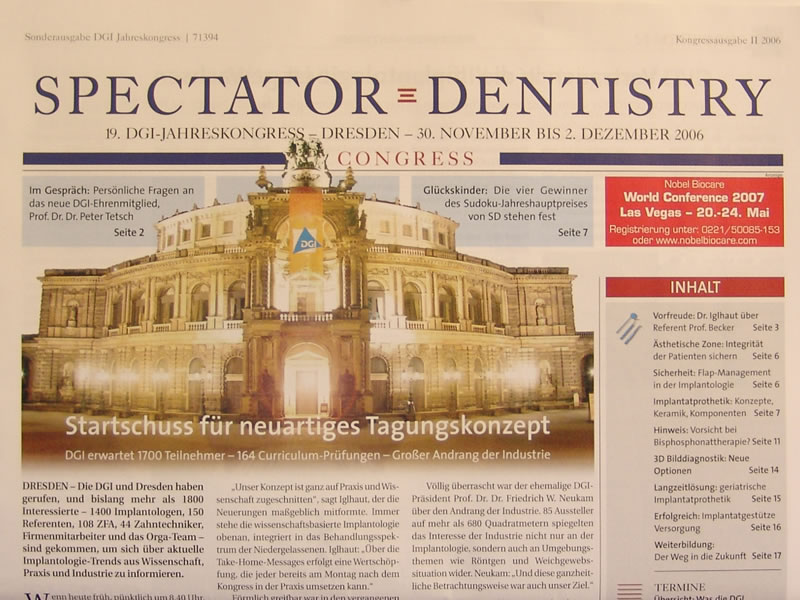 | J. Tetsch | Option Segmentosteotomie Möglichkeiten zur Korrektur von Implantatfehlstellungen | Spectator Dentistry, Kongressausgabe 2006, 1: 6 |