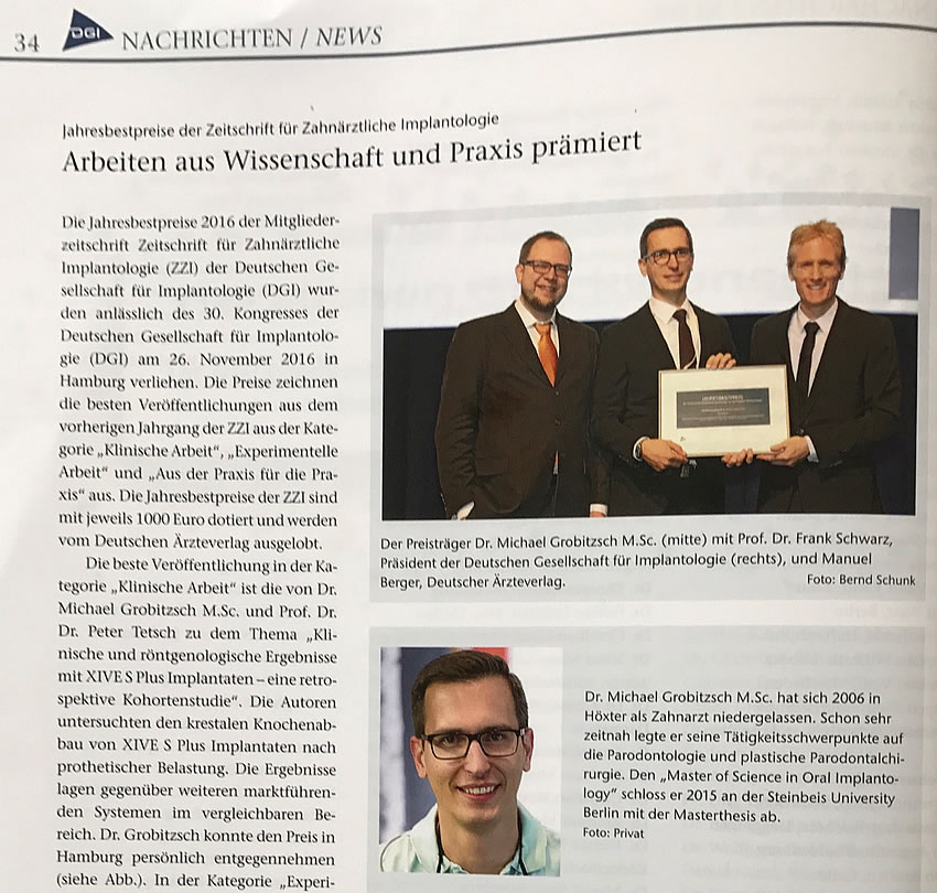 | Tetsch J | Implantation in die Zukunft | Deutscher Ärzteverlag, Dental Magazin 2016; 34 (5) |